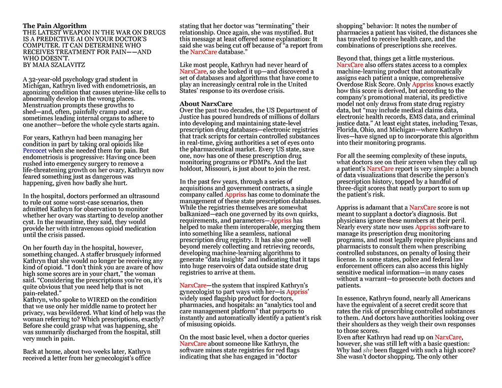 "The latest weapon in the war on drugs is a predictive ai on your doctor’s computer. It can determine who receives treatment for pain—— and who doesn’t"